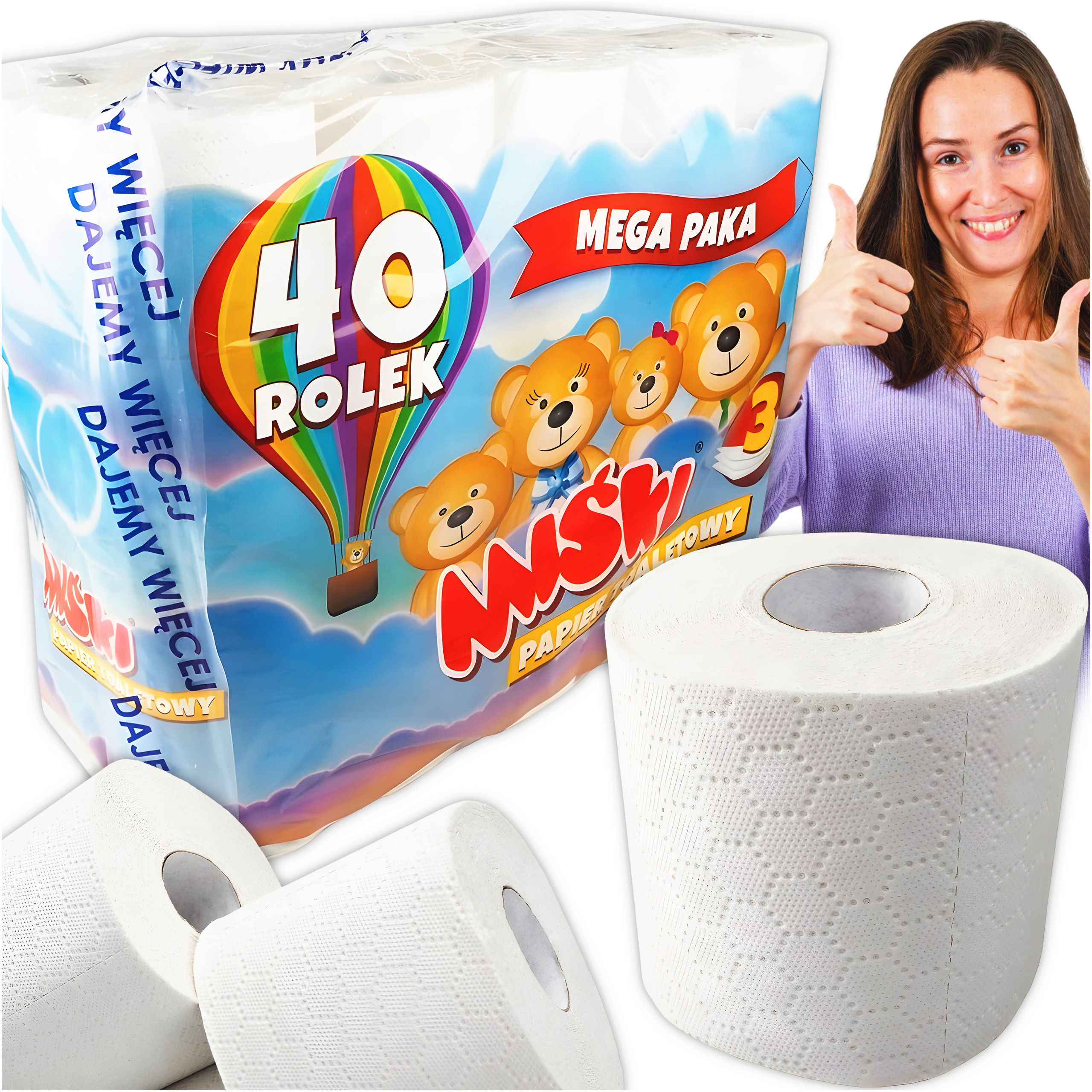 ⭐ Papier toaletowy MIŚKI 40 rolek 3 warstwowy
